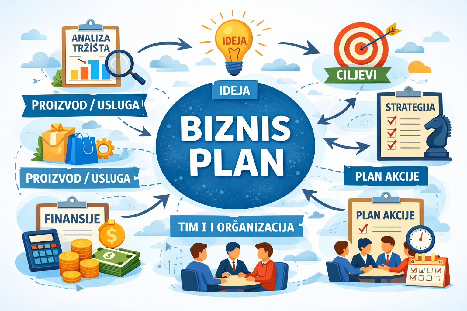 Biznis plan je detaljna analiza Vašeg poslovnog poduhvata koja obuhvata: